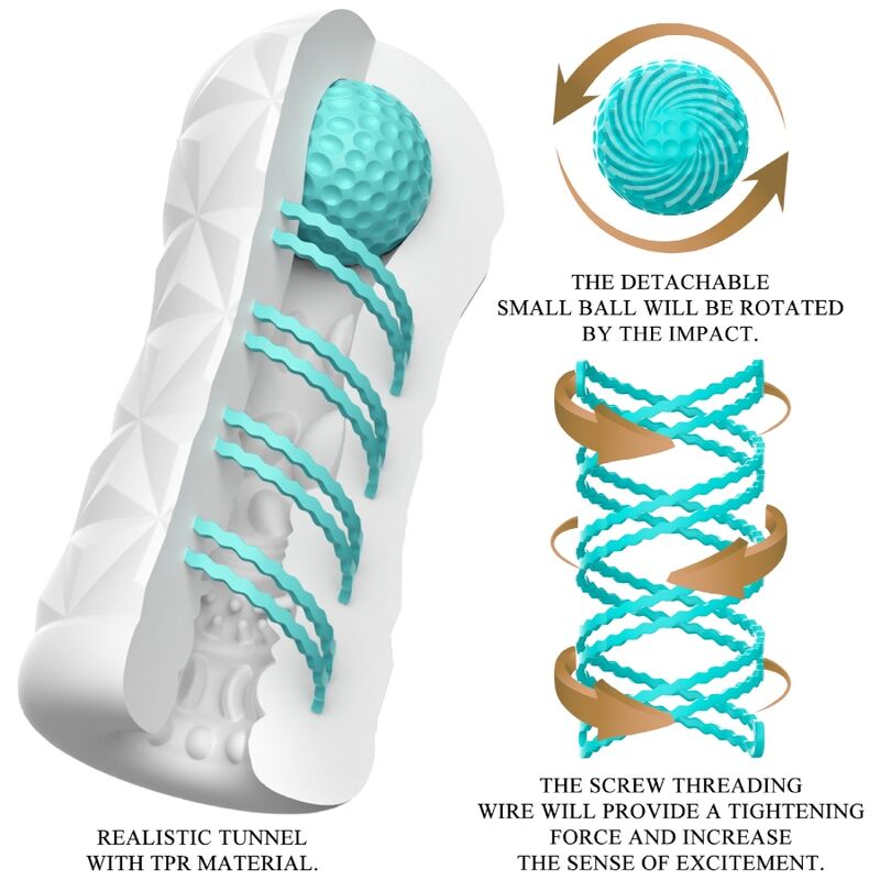 ¡Una pequeña herramienta para una masturbación increíble! Este masturbador transparente y reutilizable cuenta con una espiral giratoria y una bola de estimulación lateral. La espiral giratoria hace que el masturbador gire durante la penetración, y la bola superior estimula el punto exacto, brindándote una nueva sensación. La funda tiene una textura estimulante y excitante que masajea el pene de forma intensa y dinámica durante el masaje. Puedes usar este elegante masturbador hipoalergénico una y otra vez. ¡Muy fácil de usar y puro placer!